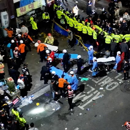 More than 150 people died with more than 130. Why Itaewon is such a popular spot Itaewon was the location of a deadly stampede in Seoul Saturday night. Medical staff attend to a person on a stretcher at the scene where many people died and were injured in a stampede during a Halloween festival in Seoul South Korea Oct.